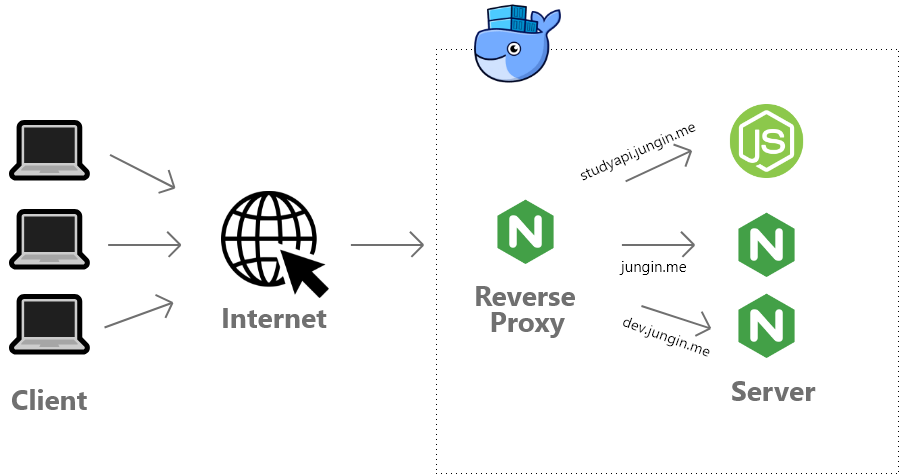 ์ฒ์์๋ ๋จ์ํ ํ๋์ ์๋ฒ๋ฅผ ๊ฐ์ง๊ณ ์ฌ๋ฌ ๊ฐ์ ์น ์๋น์ค๋ฅผ ์ ๊ณตํ๊ณ ์ถ์ด ์์ํ์๋ค. ๊ทธ๋ฌ๋ ๊ณต๋ถ๋ฅผ ํ๋ฉด ํ ์๋ก Reverse Proxy ์๋ฒ๋ ์๊ฐ๋ณด๋ค ๋ค์ํ ๊ธฐ๋ฅ์ ๊ฐ์ง๊ณ ์์๊ณ Docker๋ฅผ ์ด์ฉํ๋ฉด์ ์ฌ๋ฌ ์ํ์ฐฉ์ค๋ฅผ ๊ฒช์๊ธฐ์ ๊ธ๋ก ๊ธฐ๋กํด๋ณธ๋ค..
